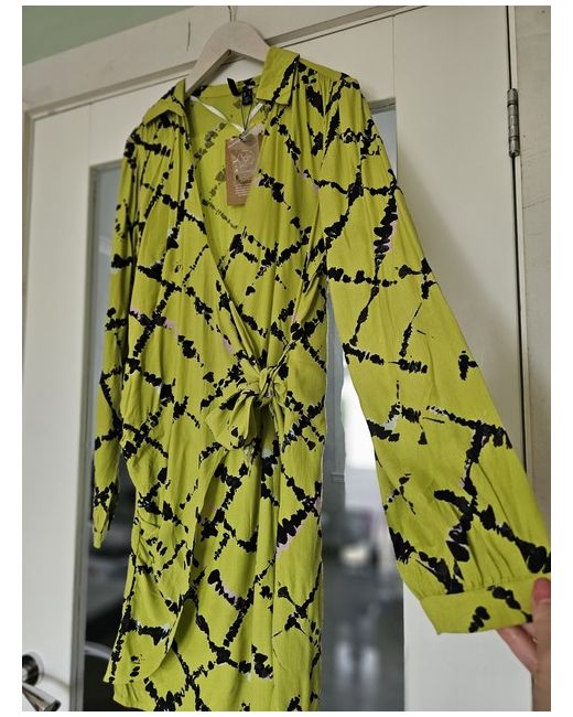 This beautiful Vero Moda wrap dress in size S is perfect for any occasion. With a flattering V-neckline and long sleeves, this dress is made from lightweight viscose material, making it comfortable and perfect for any season. The dress features a tie closure at the waist, giving it a feminine and stylish look. The dress is perfect for weddings, parties, or cocktail events, and comes in a stunning green colour. It has a collared neckline and is short in length, making it perfect to show off your legs. The dress is a great addition to any wardrobe and is sure to make you feel confident and stylish.
