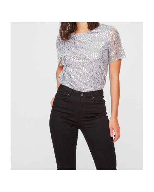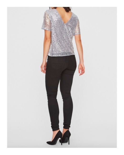 Women's Silver Daisy Sequin V Back Top BNWT S