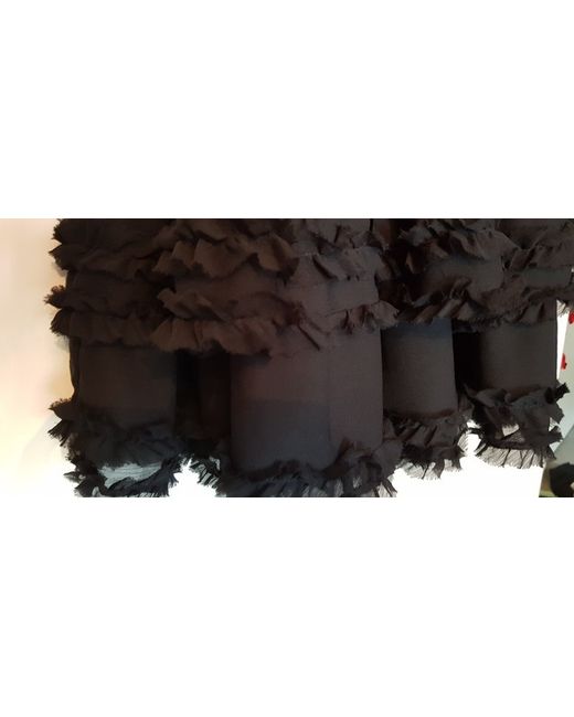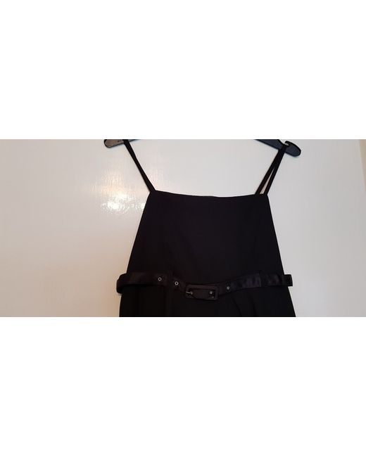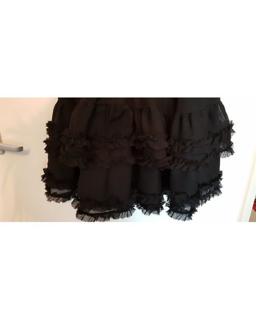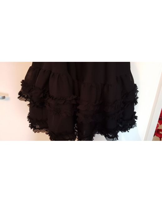 Black spaghetti strap dress Shirring at rear for stretch fit Size 36 Adjustable straps Slim Steen belt 3 ruffle layers at base of floating a-line skirt
