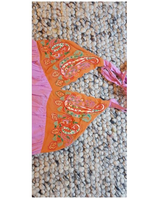 Pink halterneck Maxi dress with orange embroidered and beaded bra top. Frill to bottom. Size M fits 12. Purchased in airport and never worn.