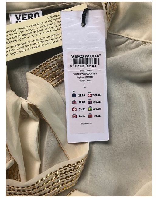 Vero Moda Cream Blouse Size L. Condition is New with tags. With golden sequin neck ties. Comes from a pet and smoke free home.