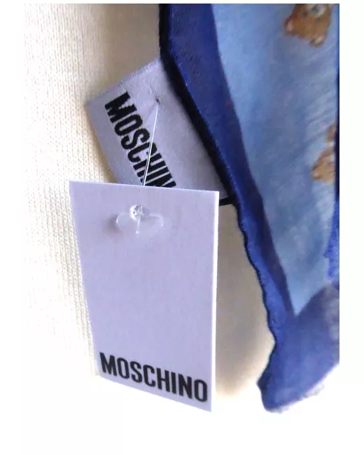 Moschino's cute mascot—inspired by the founder's unabashed love of teddy bears—gets reinterpreted as a playful polka dot motif on this long lightweight scarf. Made in Italy.