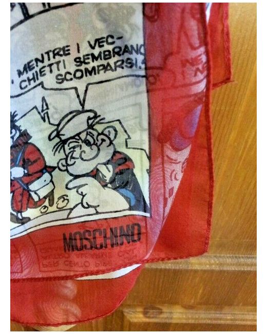 Unused unusual 100 % silk Popeye comic Moschino long scarf made in Italy.