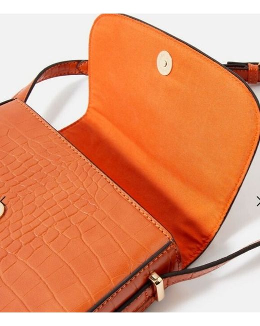 Designed in mock-croc, Ruby is finished in a saddle style with an adjustable strap and magnetic snap closure. wipe clean. L 15 cm x W 22 cm.
