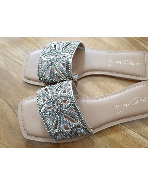 Beaded Stripe Cross Strap Footbed Sandals 4
