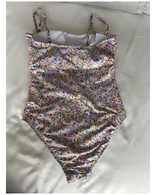 Cream Multi Floral Lace Up Back Swimsuit UK 10 BNWT
