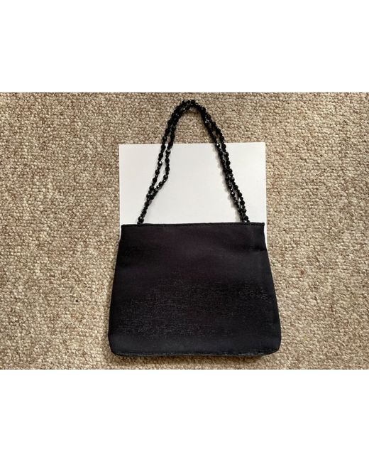 Women's Black new small silk evening bag with multifaceted beaded handles