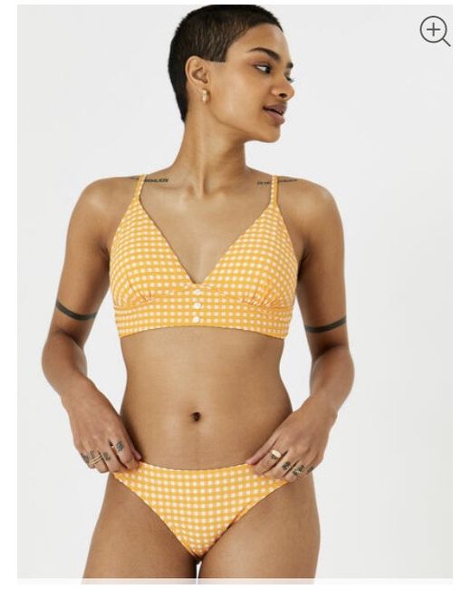 accessorize london Gingham button bikini crop top orange size uk14