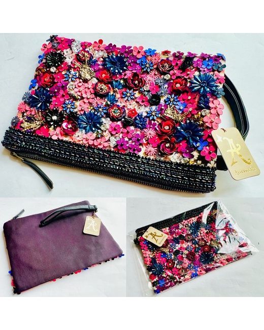 New With Tags Beaded Embellished Multi Clutch Bag
