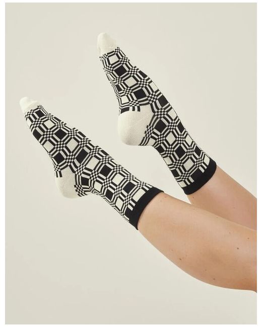 Women's White BNWT Black Square Geometric Design Socks Cotton 4-7