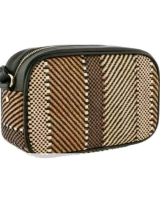 A smart black weave textile bag from Monsoon Accessorize. The inside is lined with a small zip pocket to keep your change in one place. It's designed in smooth faux leather with woven panels, carried by an adjustable cross-body strap and fastened with a gold-tone zip.