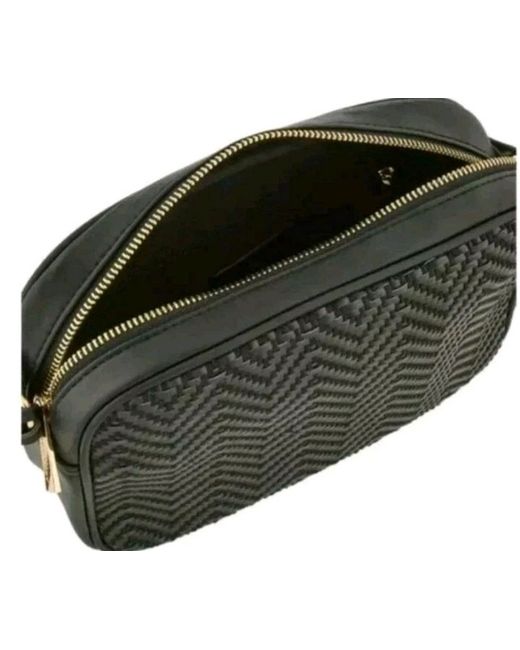 A smart black weave textile bag from Monsoon Accessorize. The inside is lined with a small zip pocket to keep your change in one place. It's designed in smooth faux leather with woven panels, carried by an adjustable cross-body strap and fastened with a gold-tone zip.