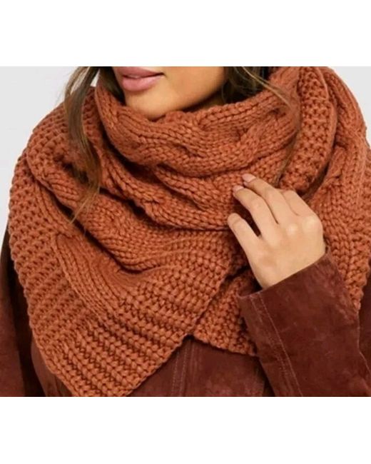 A lovely ladies scarf from Bea range at Monsoon Accessorize. Knitted with chunky yarns and large cable stitches, the Bea scarf is a hero of winter styling. Tan / brown. Rrp £25.00.