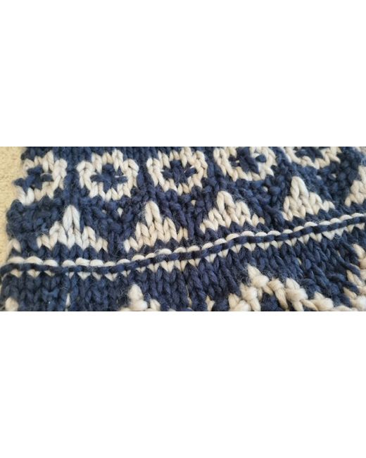 Women's Blue Navy Grey Chunky Pattern Stripe Knit Wool Mix Scarf Cowl Snood
