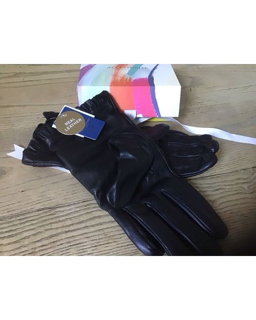 Very smart ladies black real leather gloves with pretty frilled leather trim on the cuffs. In brand new unused condition. Still in immaculate gift box with gold tissue paper and cream gift ribbon. Unwanted Christmas present. Size M/L Free Delivery