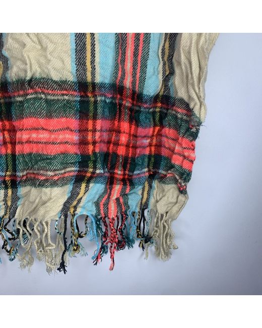 Women's Multicolor Accesorize large scarf rectangular 76 X 30 Beige Red Multi tartan checked