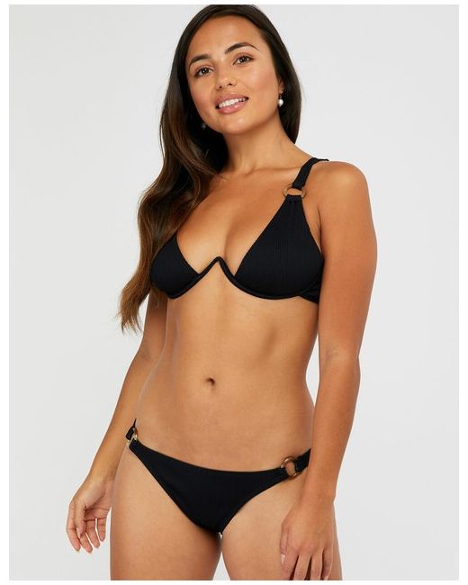 Black Ribbed Bikini Briefs With Rings Bottoms Low Rise 14 42 10