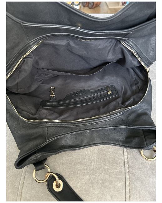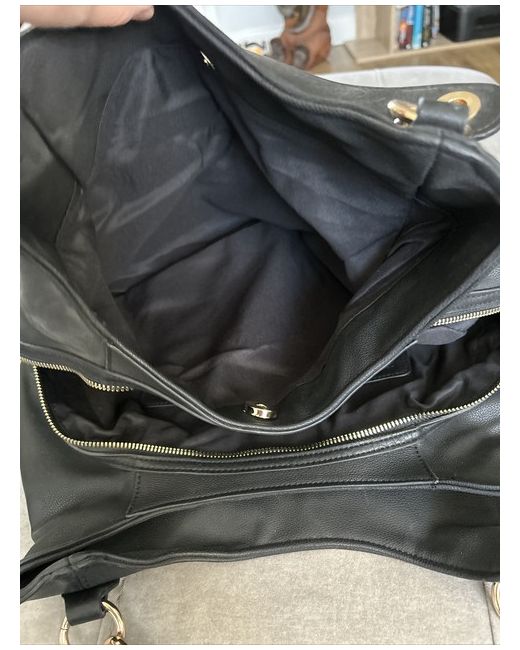 Ladies black and gold shoulder bag There are 3 main compartments 2 with magnetic poppers and the central one has a zip. Also inside the centre part is a hook to attach your purse or keys to keep them safe and stop from getting them lost Bag is brand new without tags never been used