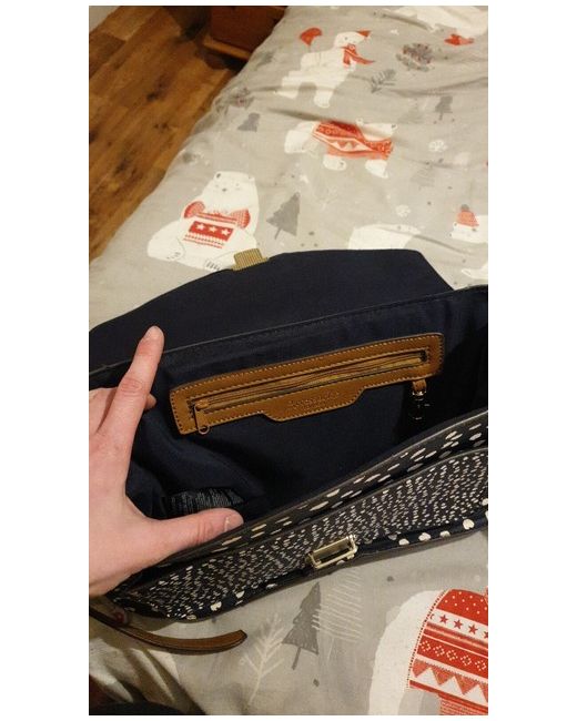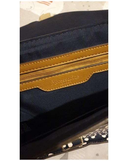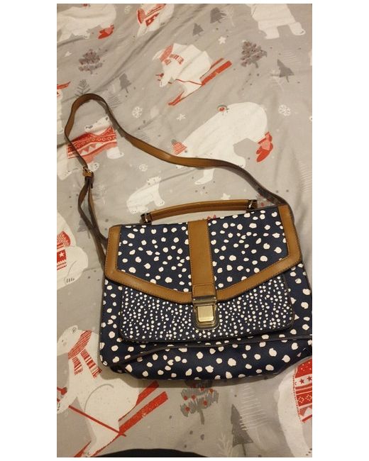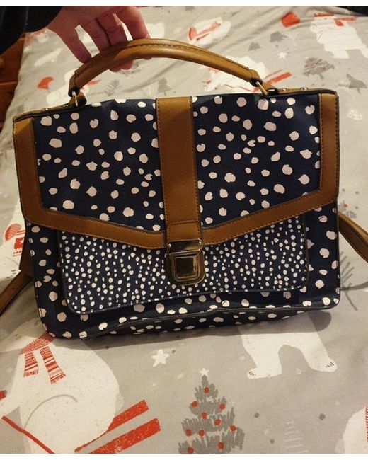 Elevate your style with this chic satchel bag from Accessorize. The matte finish and navy faux leather exterior with strap accent make it the perfect accessory to complete any outfit. The rectangular shape and medium size provide ample space for all your belongings, while the latch closure keeps them secure. The top handle and adjustable strap in brown faux leather add a touch of sophistication, complementing the blue character and hardware. The lined interior with inner pockets in blue fabric makes it easy to organize your essentials. This women's satchel/top handle bag also comes with a matching pouch, making it a must-have for any fashion-conscious woman.