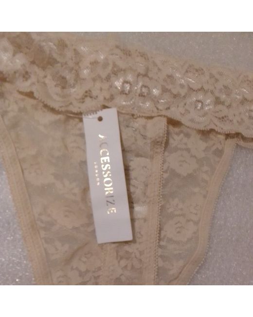 This is a steal with 6 assorted colours and style of lace thongs by Accessorize, size 20. Pack contains x 3 white, 1 black, 1 beige and 1 burgundy, a blend of cotton, nylon and elastane, hand wash .
