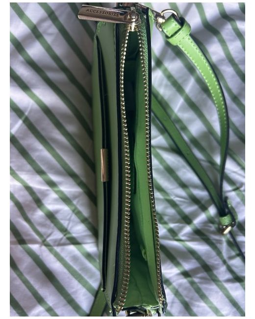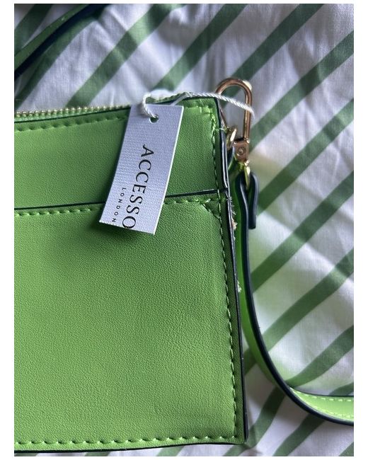 This stylish green crossbody bag from Accessorize is perfect for any fashionable woman on the go. With a zip closure, you can trust that your belongings will stay secure. The small size of this bag makes it perfect for everyday use, while the green faux leather exterior and gold hardware give it a chic and trendy look. The green lining inside matches the exterior, and the faux leather strap is comfortable to wear. This bag is a must-have for any woman's collection.