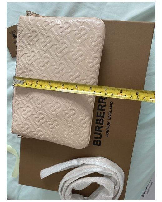 Crafted for the modern woman, this Burberry Crossbody bag combines elegance with practicality. The buttery leather exterior, presented in a delicate baby pink hue, is complemented by a durable canvas lining, ensuring your belongings are cradled in luxury. With dimensions of 24 cm by 16 cm, it's the perfect size for your essentials without the bulk. The bag features a silver hardware finish that adds a touch of sophistication to its overall design. An adjustable pink leather strap offers versatile wearability, catering to your preference for comfort and style. Whether stepping out for a casual affair or adding a chic touch to your everyday ensemble, this Burberry crossbody is an impeccable choice for those who appreciate designer quality and understated charm. Gift box included.