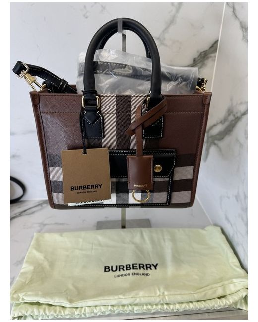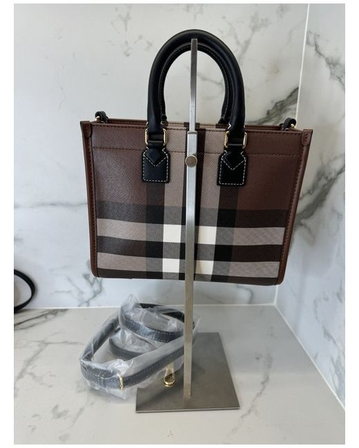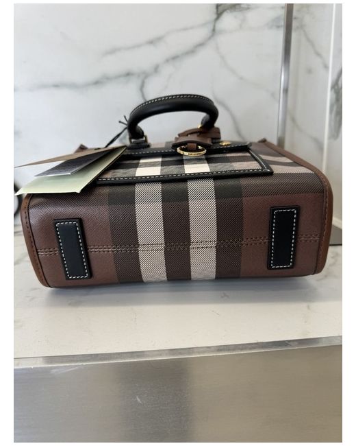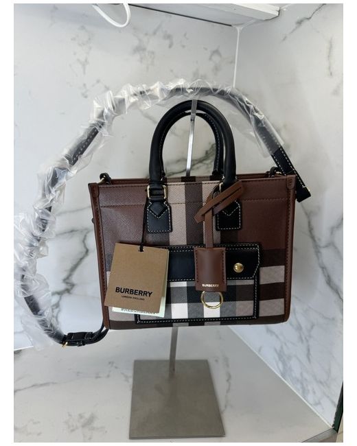 Crafted from sumptuous leather in a rich chocolate brown, the Burberry Mini Freya Tote Bag is a stunning accessory for any fashion-conscious individual.
