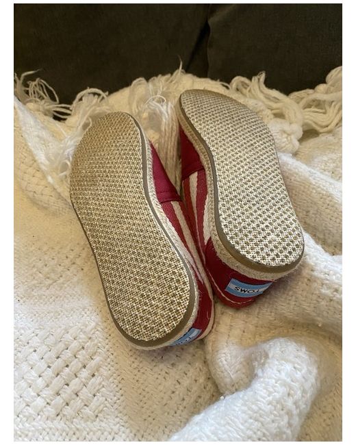 A new pair of university stripe red toms size 4 bought but never worn.