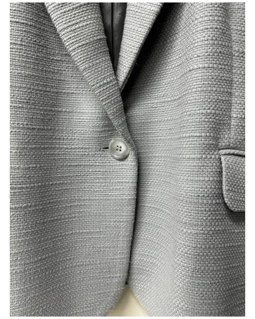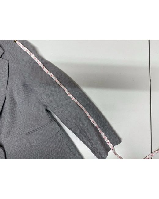The light grey/ pale blue colour and tweed fabric type make it suitable for a range of occasions, including travel, parties, casual wear, and workwear. The jacket has a short length and long sleeves, with a button closure and pockets for added convenience.
