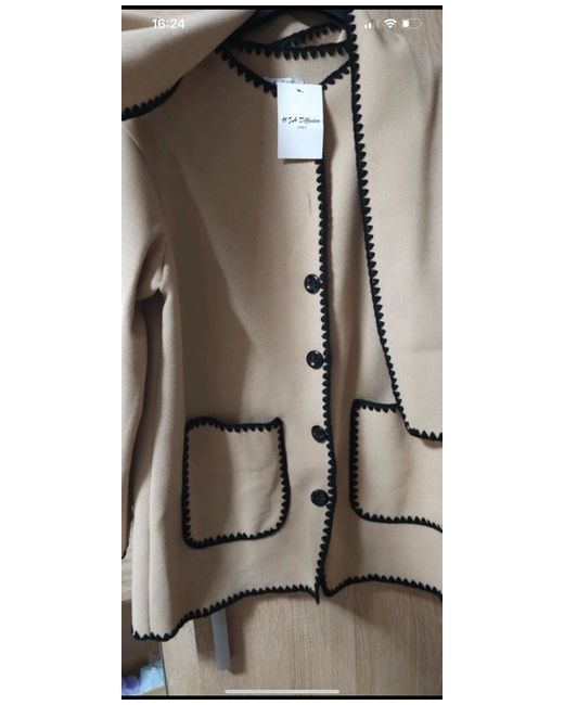 New with tags wool jacket with scarf Beige and black trim Very stylish