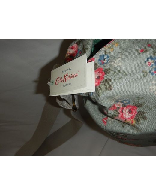 CATH KIDSTON. There is a CATH KIDSTON fabric label on the front and inside and a small fabric label. LARGE FLORAL CROSSBODY BAG. 13 1/2" wide, 15" high and 4" depth at the widest points. IMPORTANT INFORMATION.