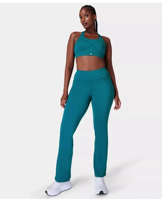 A beautiful pair of supersoft bootcut trousers ideal for yoga and loungewear. SWEATY BETTY. POWER BOOTCUT GYM TROUSERS. Sweat-wicking and quick-drying with 4-way stretch with b um-sculpting seams and a flattering bootcut silhouette.