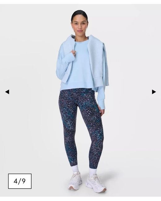 Model wears size S and is 178cm/5'10" tall. Side slip pocket and back zip pocket for your phone. Colour: Blue Aurora Print. Stretchy fabric with an ultra-supportive fit. Inseam length: 27" / 68cm.