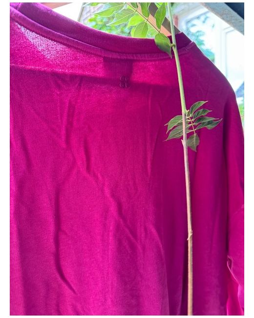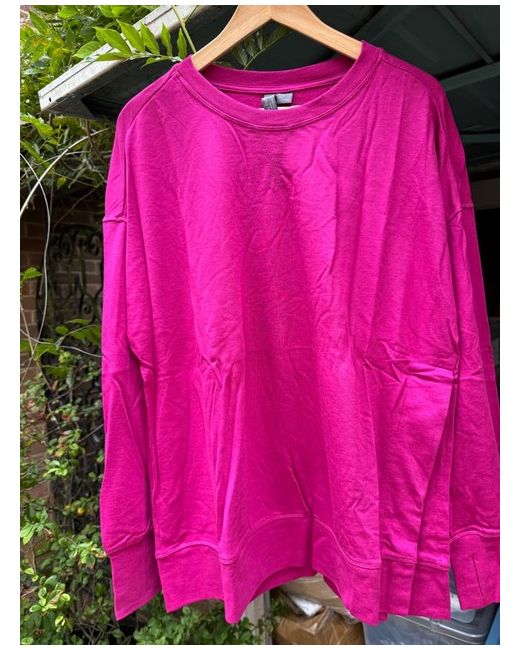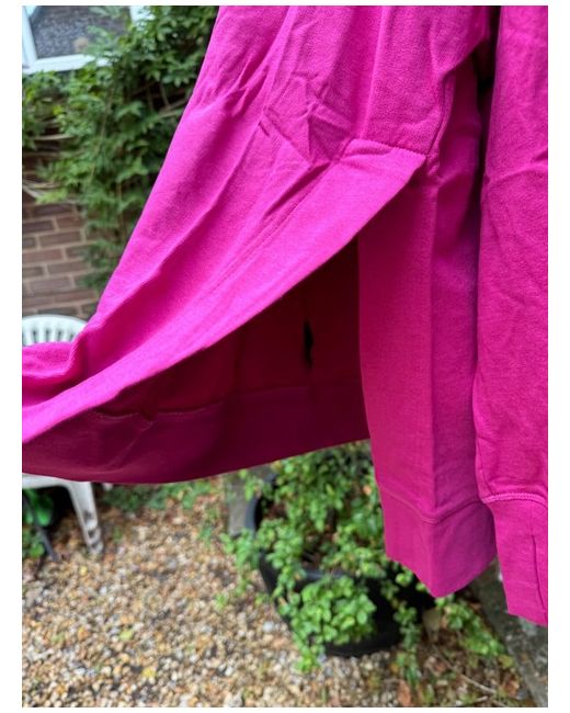 Breathable blend of organic cotton and stretchy modal. Colour: Pink Fabric: Composition: 49% Modal, 51% Organic Cotton. Cleaner seamlines and a new, exaggerated split at one side. Dropped shoulders, cosy thumbholes and V-stitch detailing at the neck.