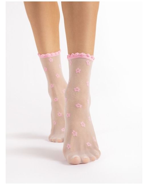 FiORE April Ankle High Socks. Both versions are a white base with either a white pattern or a pink pattern. 90% Polyamide, 10% Elastane - White Version. 85% Polyamide, 10% Polypropylene, 5% Elastane - White/Pink version.