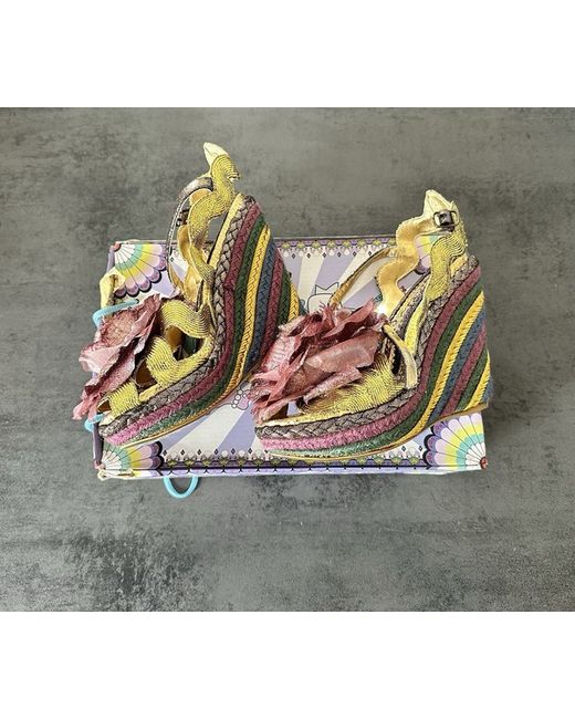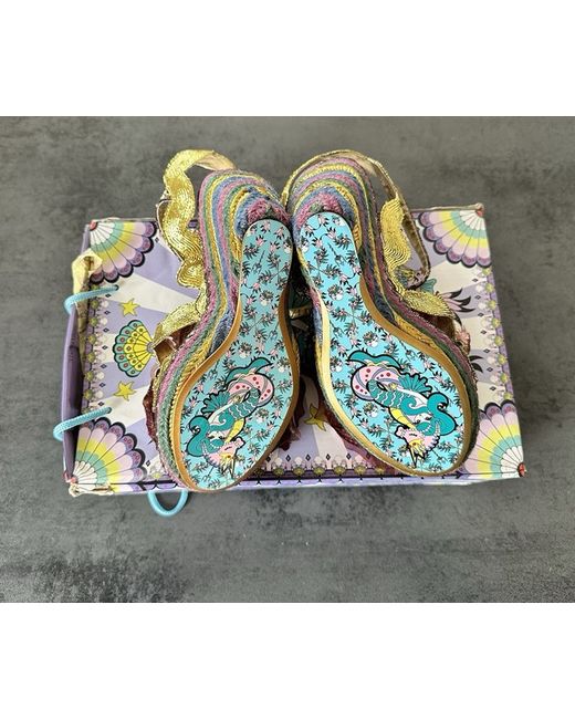 The product is a pair of multicoloured Irregular Choice court heels in UK size 5.