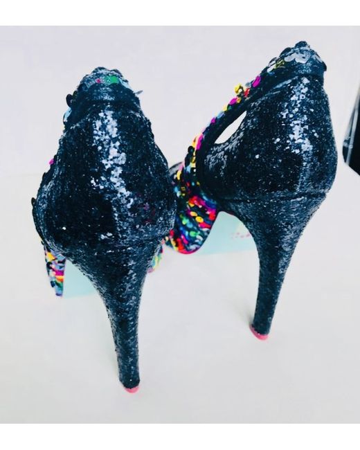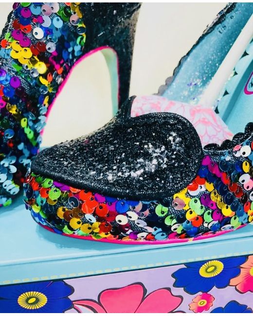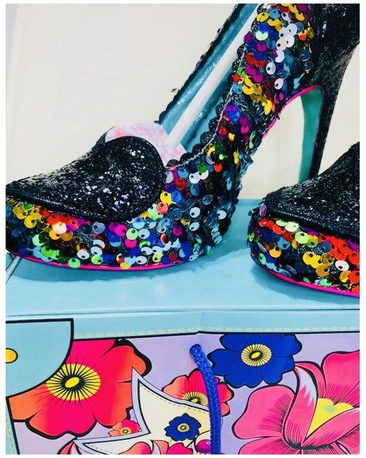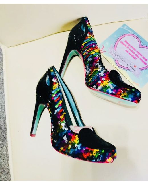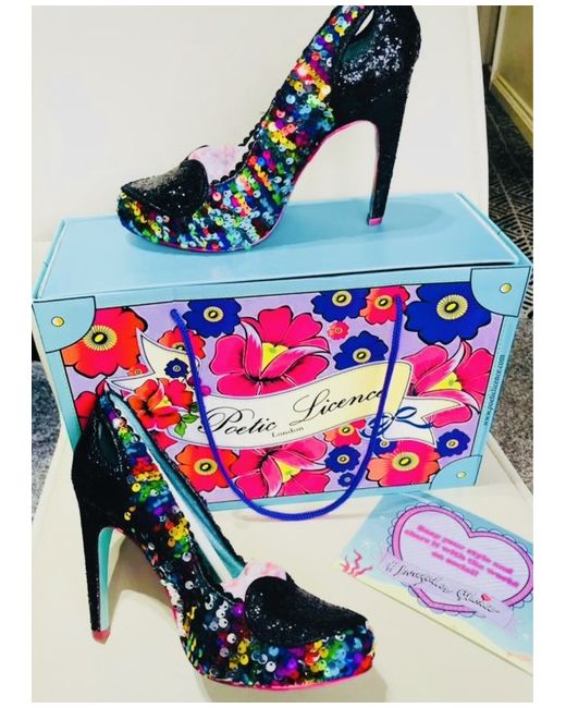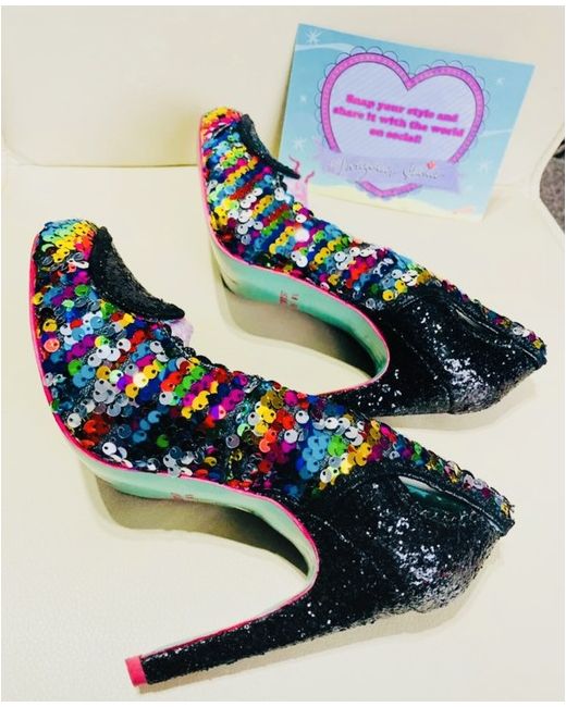 An absolutely stunning pair of Ladies stiletto heels, poetic license by Irregular choice❤️ Covered in multi coloured sequins and Black sparkly glitter, uk size 4, brand new with box❤️