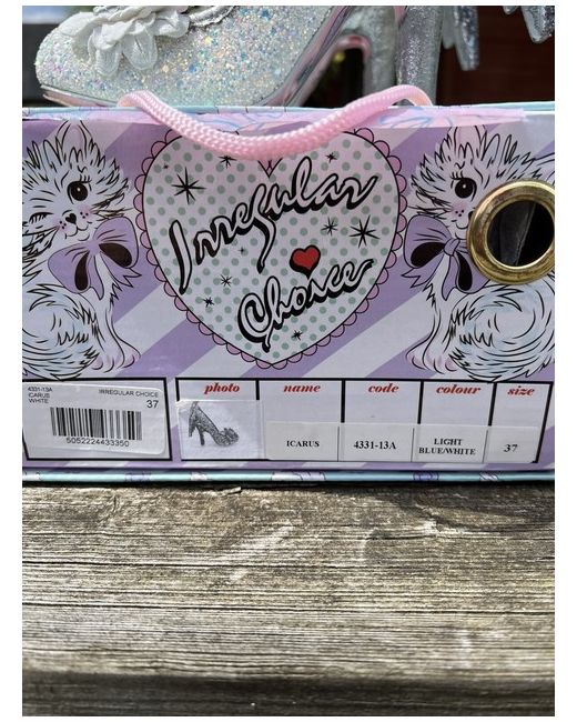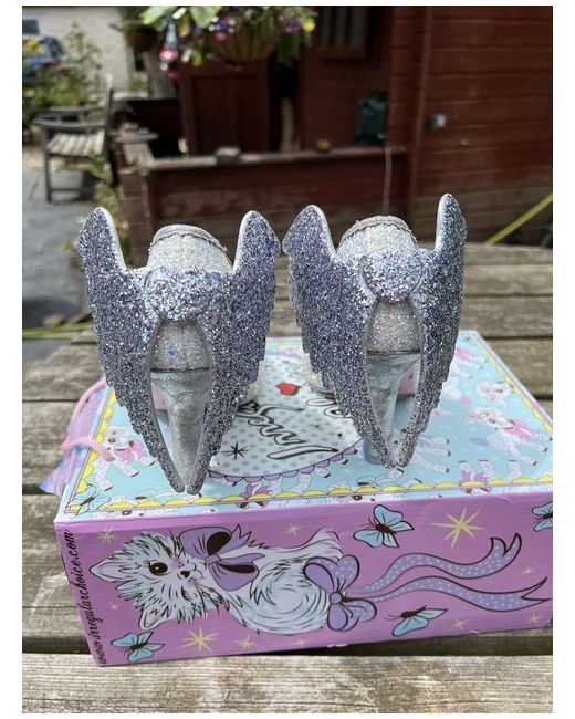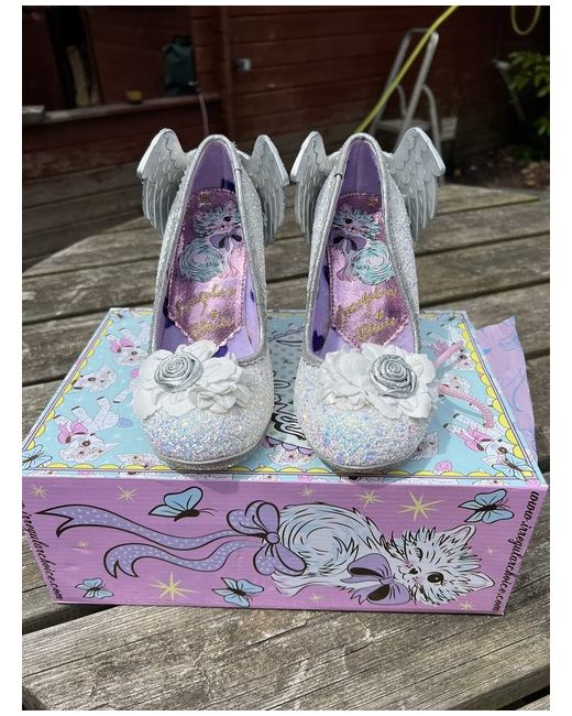Irregular choice 'Icarus' heels, size 37 which is roughly uk 4 Absolutely stunning in person, pictures do them no justice. Some slight glue overflow, mainly on the inside but also on one of the flowers. In their original box, have been tried on inside with sole protectors on but otherwise new