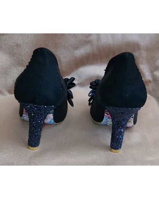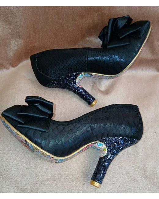 These shoes are new and unworn but sized incorrectly as they say 6 but have been sold and returned due to being much smaller than a six, they are between size 3 and size 4. Step out in style with these Irregular Choice Iconic stiletto heels, the perfect addition to any fashion-forward wardrobe. With a striking black faux snakeskin and fancy bow at the front with glittery 9cm heels and velvet-lined upper, these court-style shoes boast a glamorous sparkle that's sure to turn heads. The proceeds from this purchase go towards helping the RSPCA Sheffield Animal Centre, Thank you for your support.