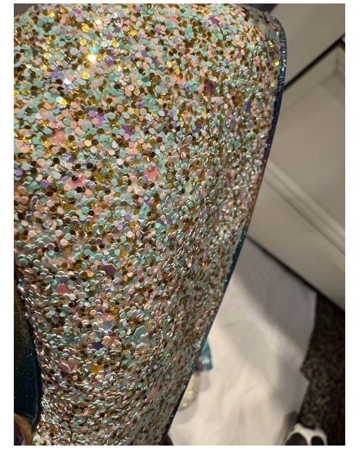 This is a pair of Irregular Choice court heels in size 6.5 UK (40 EU) for women. The upper material is synthetic and the design features a fun white and multi-coloured glitter pattern. These stylish heels are perfect for adding a pop of colour and sparkle to any outfit. Will come in Irregular Choice box not original.
