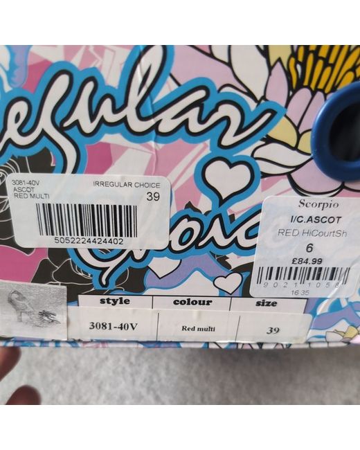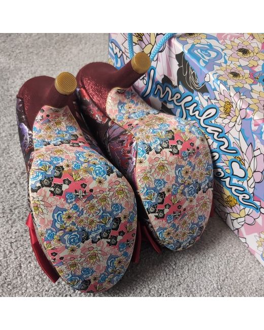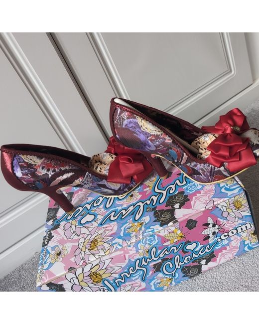 irregular choice Asgard red mult i shoe style 3081-40v size 39 brand new in box. sadly the shoes have remained in the box since purchased as they are too high for me to walk in comfortably but I just bought them because they were beautiful. the tapestry design on the shoe is stunning. photos do not do the colour justice please note the shoes are irregular choice so the shoes do look different all my items are from a pet and smoke-free home. check out my other listings as only selling due to a house move and I need to clear the loft out