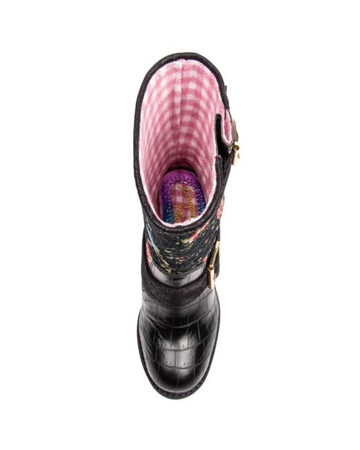 Great Escape Black Boots Irregular Choice UK Get ready to go on a grand adventure! Our 'Great Escape' boots are the perfect blend of luxurious and gorgeous fabrics, with wearable irregular style! A chunky heel gives ultimate comfort and shape, whilst the dark and rich floral fabrics contrast with black textured leathers to give an ultimate autumn and winter staple, perfect for the colder months!