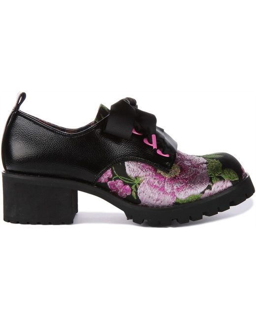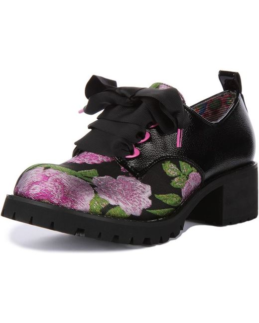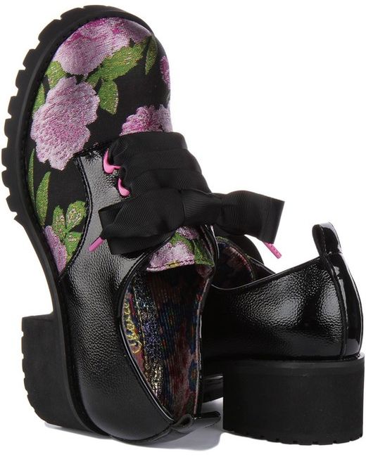 Sure to turn heads around, these gorgeous shoes from Irregular Choice feature synthetic upper with a beautiful floral detailing and round toe design. The chunky sole matches the thick ribbon laces as well as the patent trim.