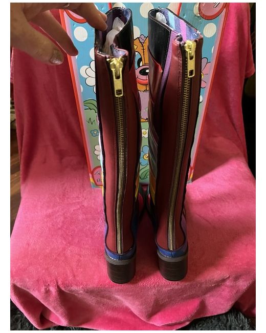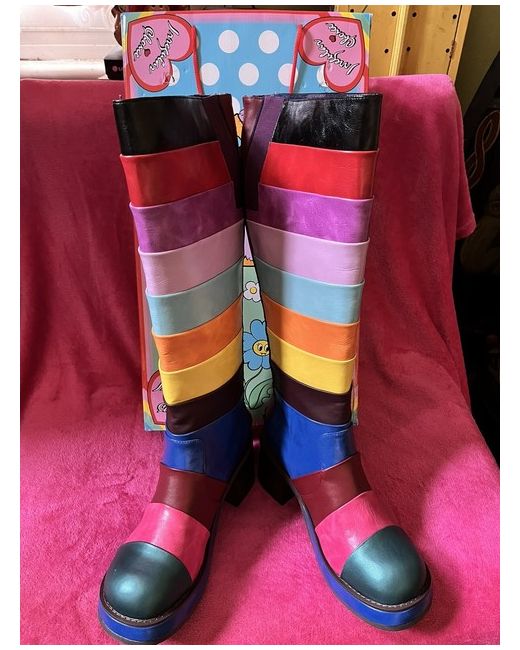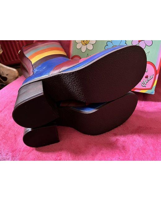 The Rainbow Leather Ammonite Boots boast a unique striped pattern in a multicoloured design, adding a pop of colour to any outfit. The square toe and mid-height block heel provide comfort and style, while the zip closure and accents make for easy wear.
