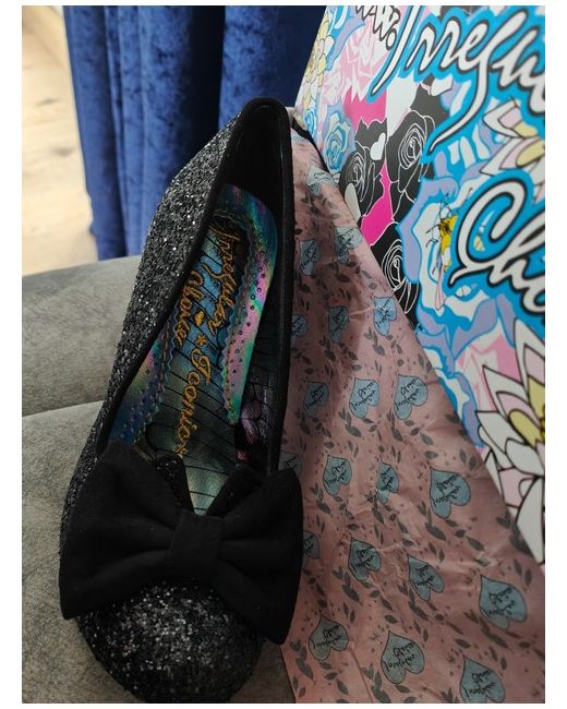 Elevate your style with these stunning black glitter heels from Irregular Choice. This classic and creative design is perfect for any occasion, adding a touch of glamour to any outfit. The shoes are brand new, never worn, boxed and ready to be worn, making them a great addition to your shoe collection. These women's shoes are a must-have for any fashion-forward individual who wants to make a statement. The heels are made for comfort and style, with a focus on quality materials and attention to detail. Get ready to turn heads and feel confident in these beautiful Irregular Choice heels. Would also make a beautiful gift.