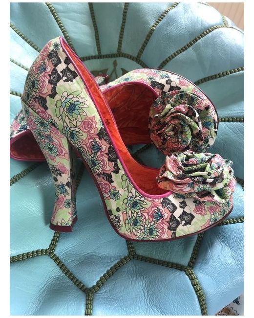 Irregular choice Toodle Loo Floral Rosette Size 5/38 but come up small it seems Beautiful fabric shoe From a while back but brand new never been worn Come with replacement heels