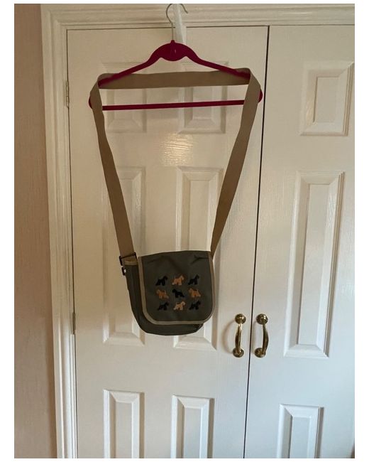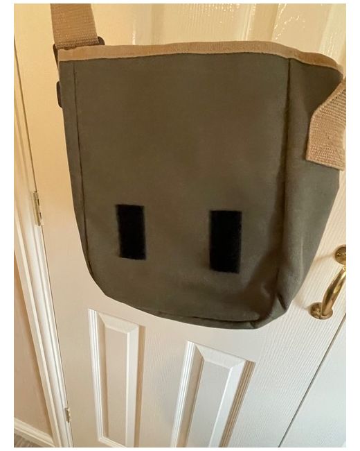 Made from durable canvas material, the exterior in a green brown colour with a brown handle/strap adds a touch of sophistication. Has a zip pocket on the out side and the main bag is velcro shut. sponge down to keep clean.