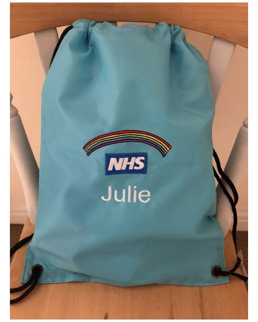 Ideal for PPE Storage. Rainbow NHS Drawstring Bag. Colour of writing required. Tough cord 210D nylon.