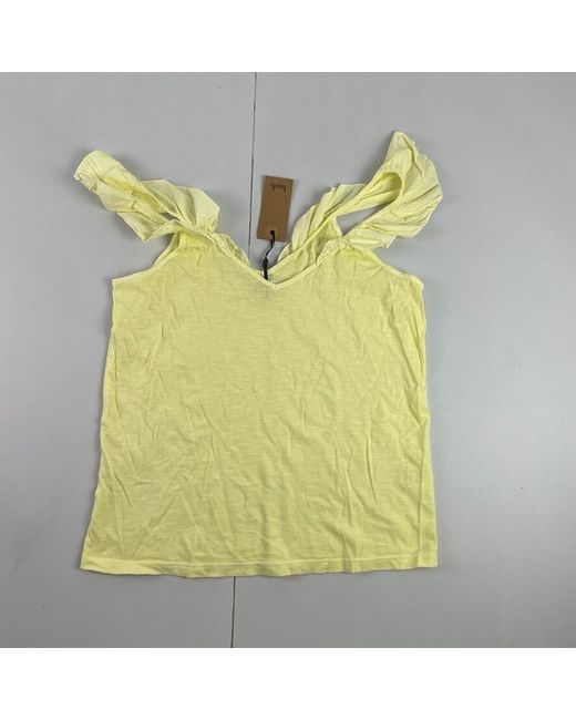 Women's Yellow Top Small Sleeveless Plain Flutter
