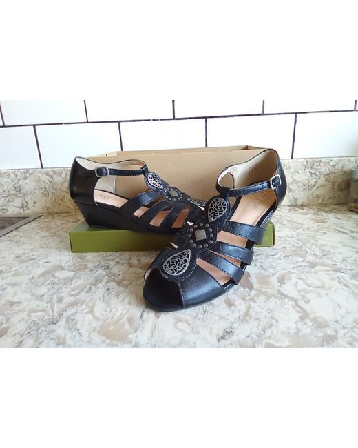 Black leather Hotter sandals with silver embellishments, new in box. Pet and smoke free home.